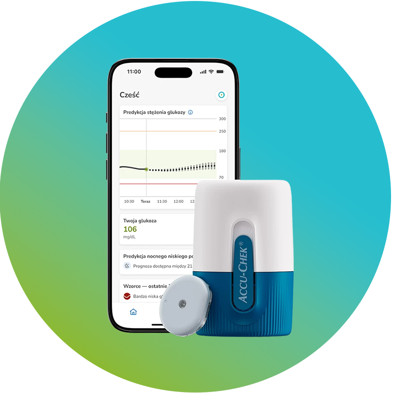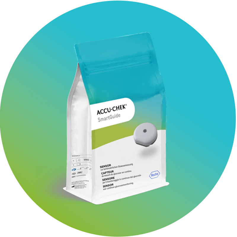 Accu-Chek SmartGuide is a continuous glucose monitoring device (CGM device) intended for continuous measurement of real-time glucose values in the subcutaneous interstitial fluid. The device is designed for people with diabetes (18 years and above). A CGM sensor placed on the upper arm automatically transmits data every 5 minutes to the Accu-Chek SmartGuide app. The Predict app analyses measurements, detects glucose patterns, and, most importantly, predicts glucose levels for the next 30 minutes, 2 hours, and overnight (7-hour prediction of nighttime lows).